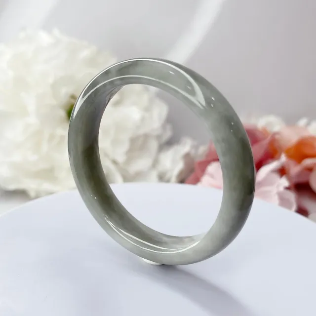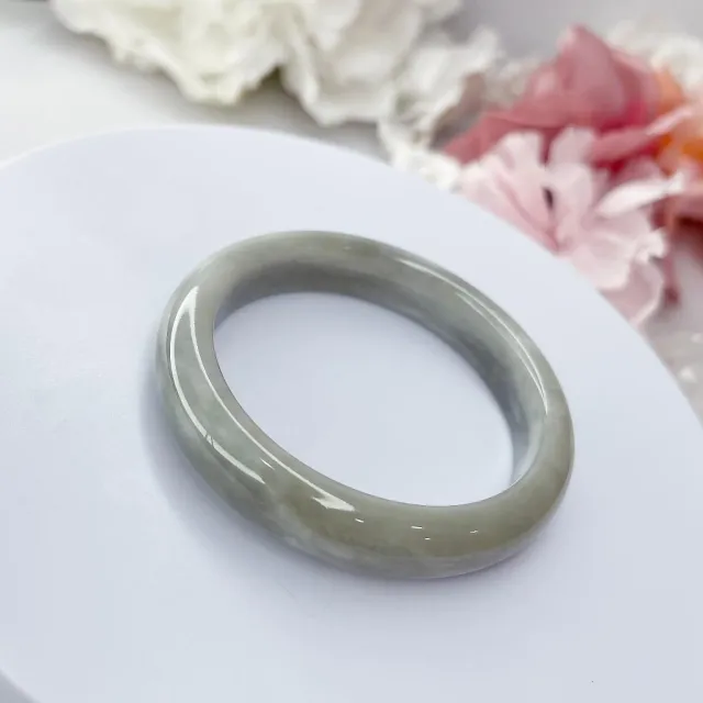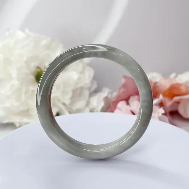 低調 煙灰 和田玉 和闐玉 飄雲彩 煙紫 50+圈口 玉手鐲 玉手環 和田 尺寸:內徑50.9*寬11*厚7.4MM