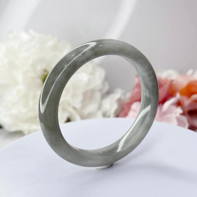 低調 煙灰 和田玉 和闐玉 飄雲彩 煙紫 50+圈口 玉手鐲 玉手環 和田 尺寸:內徑50.9*寬11*厚7.4MM