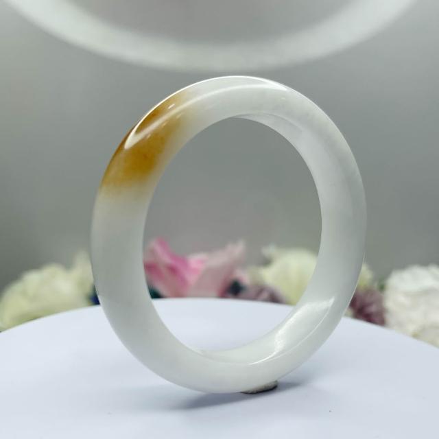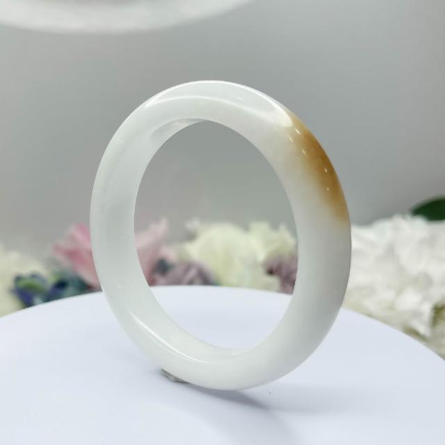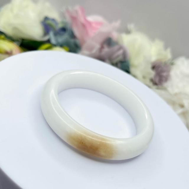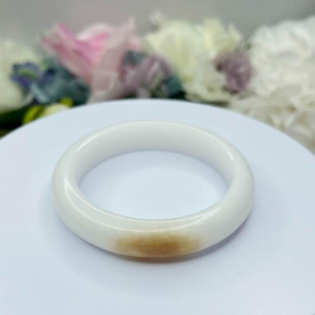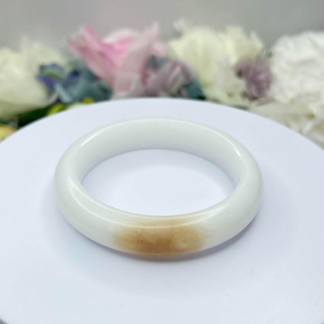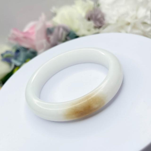No.105 俏一口 和田玉 青海山料 白玉 軟玉 手鐲 53 mm 圈口 俏色 手環