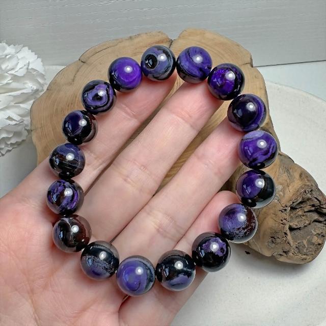 G36 南非舒俱萊石 12mm 手串|蘇紀石收藏級 天眼紋 深紫天然礦石 大珠徑手珠 手鍊 稀有深色系礦物 舒俱來