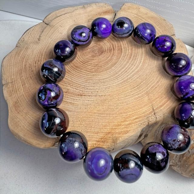 G36 南非舒俱萊石 12mm 手串|蘇紀石收藏級 天眼紋 深紫天然礦石 大珠徑手珠 手鍊 稀有深色系礦物 舒俱來