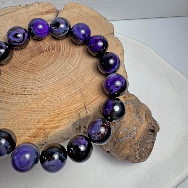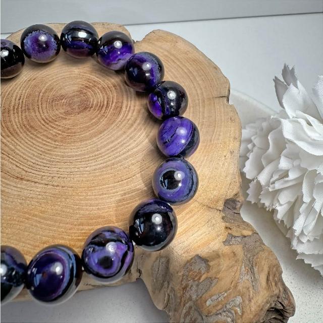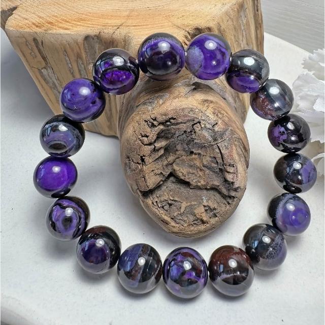 G36 南非舒俱萊石 12mm 手串|蘇紀石收藏級 天眼紋 深紫天然礦石 大珠徑手珠 手鍊 稀有深色系礦物 舒俱來