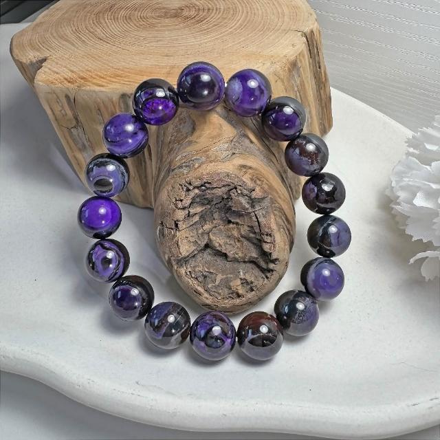 G36 南非舒俱萊石 12mm 手串|蘇紀石收藏級 天眼紋 深紫天然礦石 大珠徑手珠 手鍊 稀有深色系礦物 舒俱來