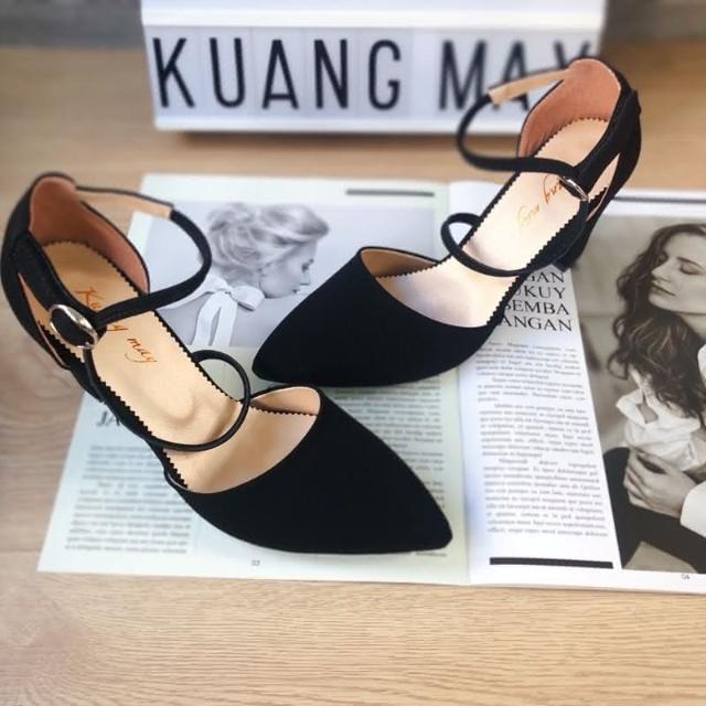 MIT🇹🇼台灣製造尖頭交叉綁帶高跟鞋 一字扣帶裸背高跟鞋 性感時尚 魔術沾
