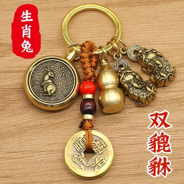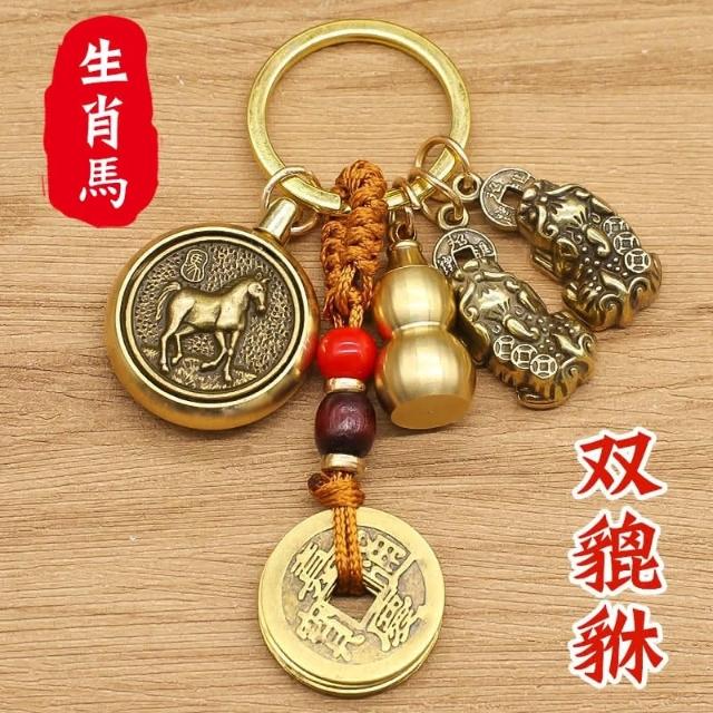 雙貔貅招財守護神 鑰匙圈 貔貅 鑰匙扣 鑰匙圈吊飾 招財 葫蘆 五帝錢 鑰匙圈扣環 汽車鑰匙圈 分享日生活
