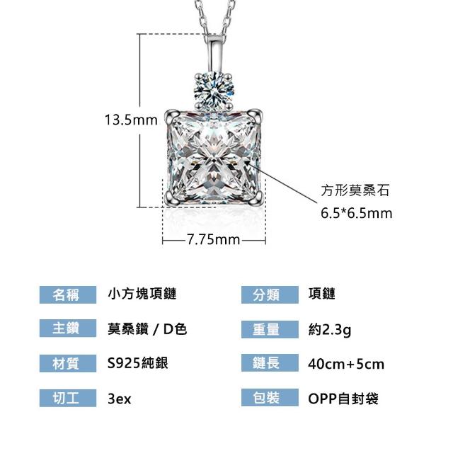莫桑鑽s925銀方塊項鏈
