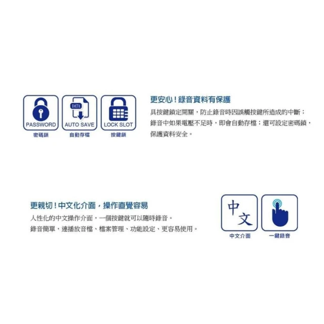 - 專用錄音鍵,隨開即錄,方便快速