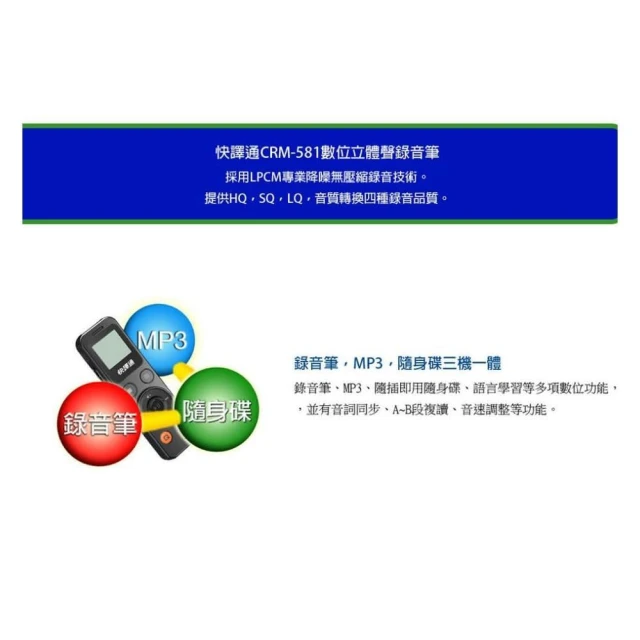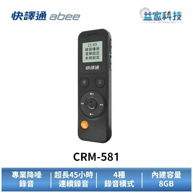 Abee 快譯通CRM-581 多功能數位立體聲錄音筆 8GB降躁錄音/隨身錄音/錄音設備/MP3隨身聽