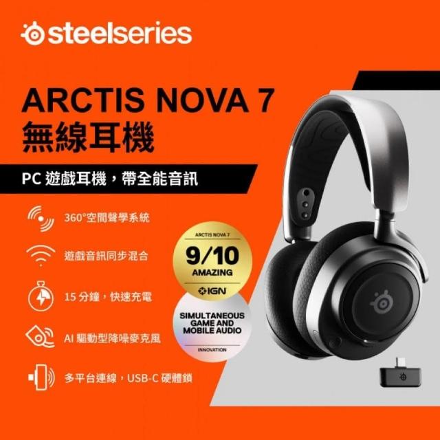 SteelSeries 賽睿 Arctis Nova 7 無線電競耳機麥克風 耳麥/AI降噪麥克風/相容多裝置
