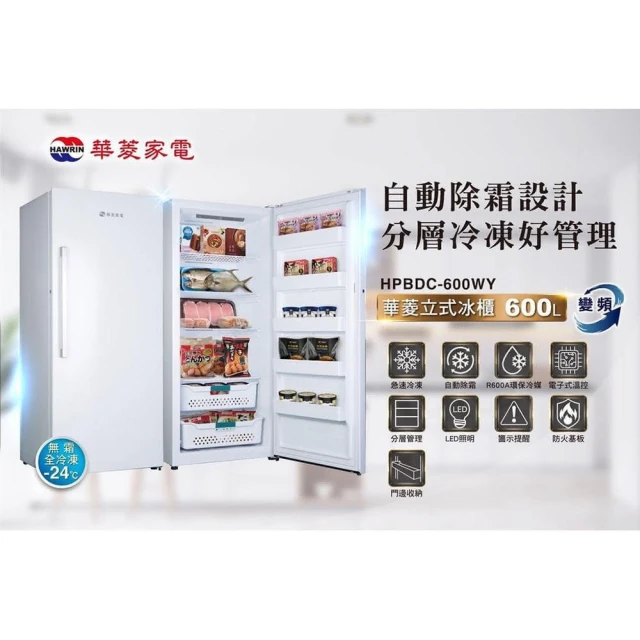 華菱HAWRIN HPBDC-600WY 600L變頻直立式冷凍櫃 600L/右開門/極窄身設計/含拆箱定位