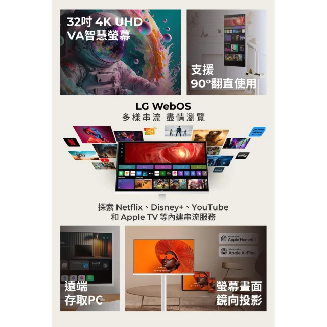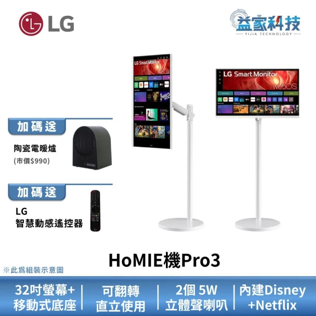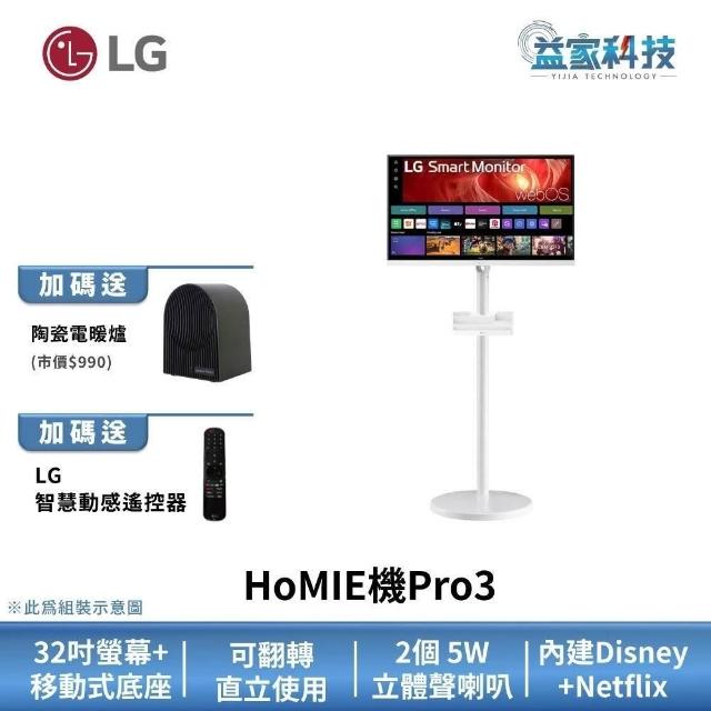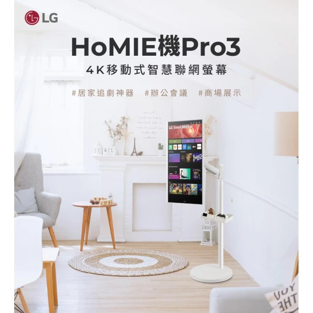 LG 樂金HoMIE機Pro 3 32吋 4K智慧聯網螢幕 (智慧螢幕/可移式螢幕/webOS/可翻轉直立操作/閨蜜機)