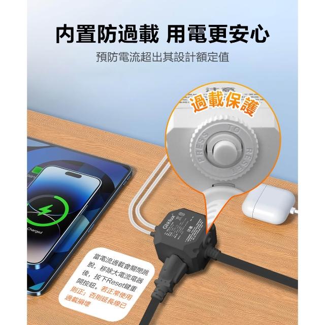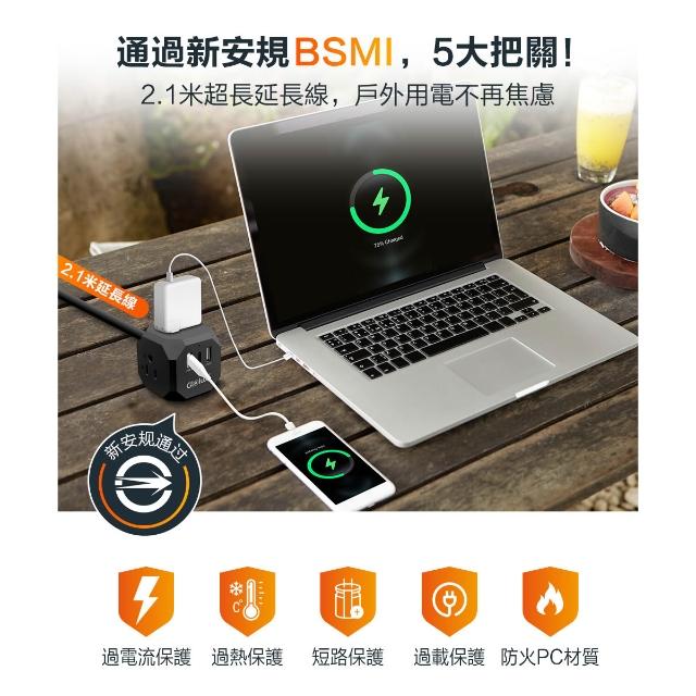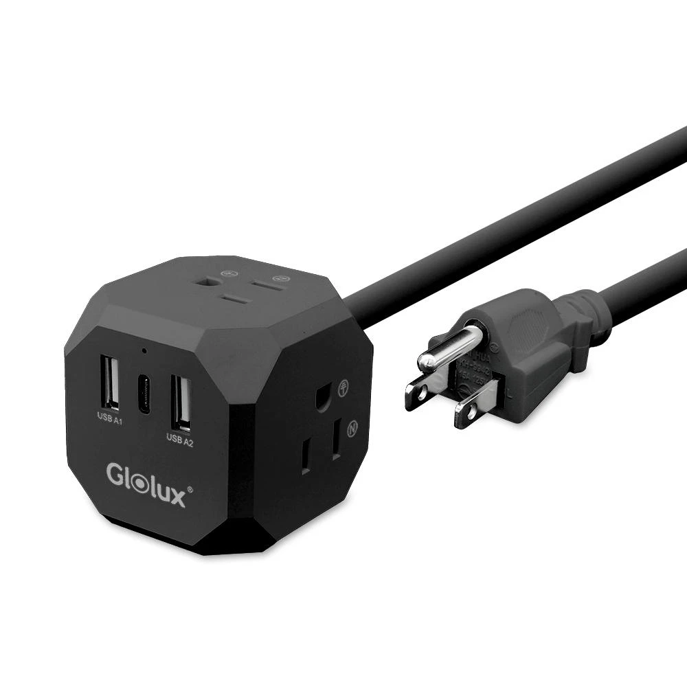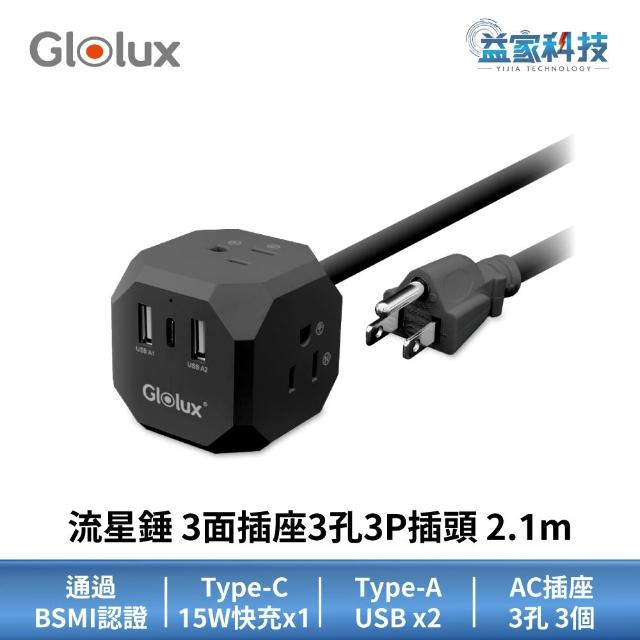 Glolux流星錘 3面插座延長線2.1M (3孔3P插頭x3/USB-A x2/Type-C快充x1)