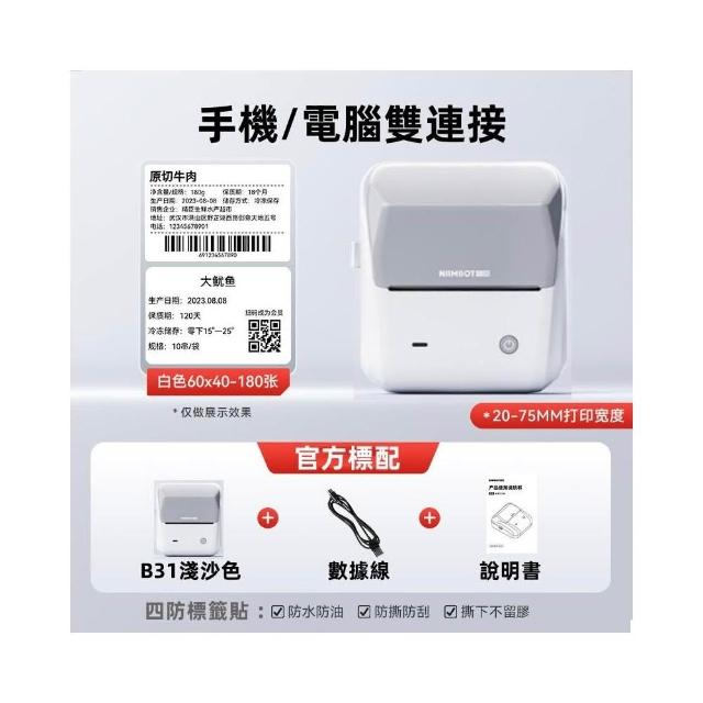 台灣公司貨 精臣B31 標籤打印機 寬版標籤機 b3s升級版 食品標籤機 列印20-75mm 多功能標籤機 無墨打印
