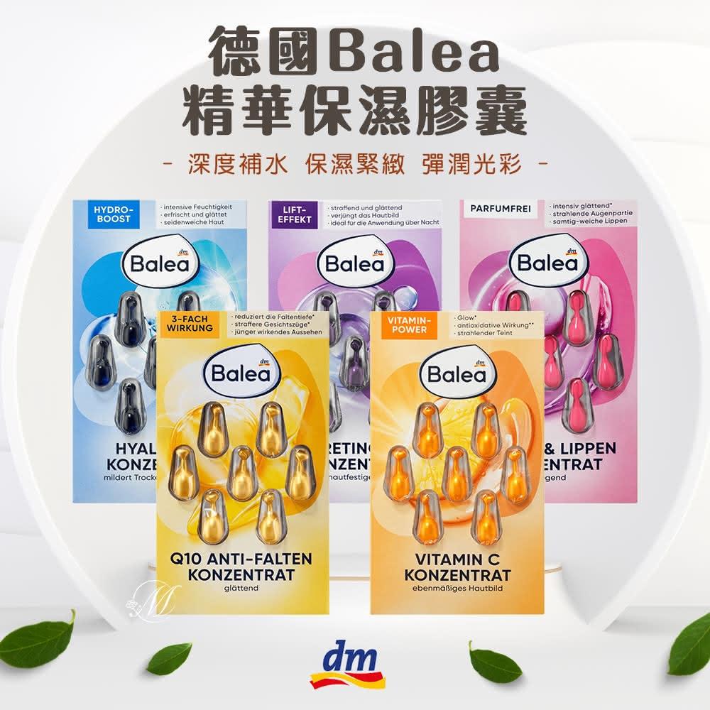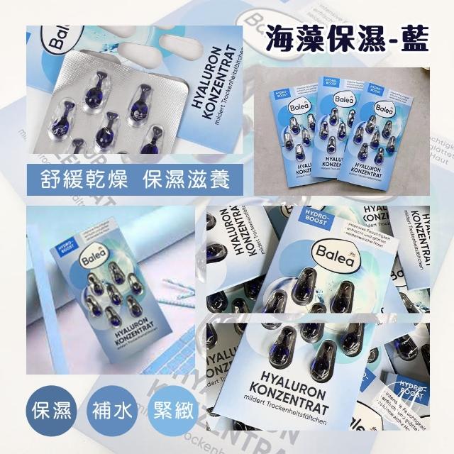 Balea 芭樂雅德國Balea芭樂雅保濕精華膠囊新包裝126顆/盒 共18片裝德國原裝進口(藍海藻保濕/黃Q10緊致/紫拉提/橘維他命C/粉眼唇)