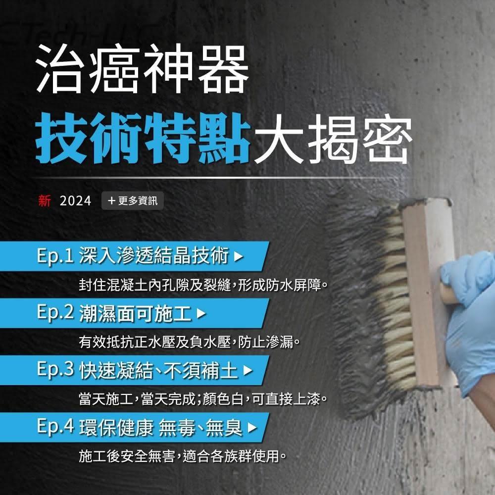 • 深入滲透結晶技術 潮濕面可施工