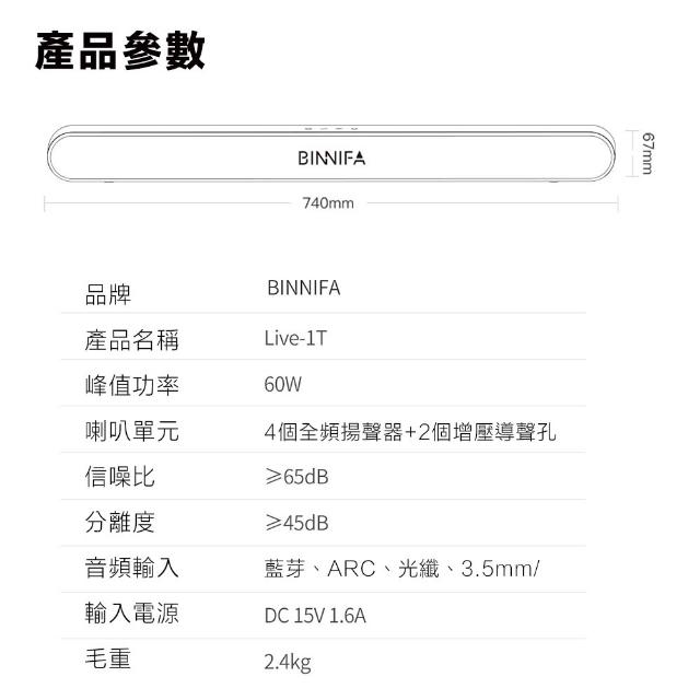 BINNIFA木質回音壁電視音響 Live-1T升級版 藍牙音響 電視音箱 Soundbar