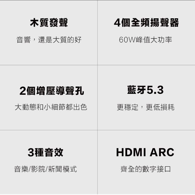 - 4個全頻揚聲器 2個增壓導聲孔