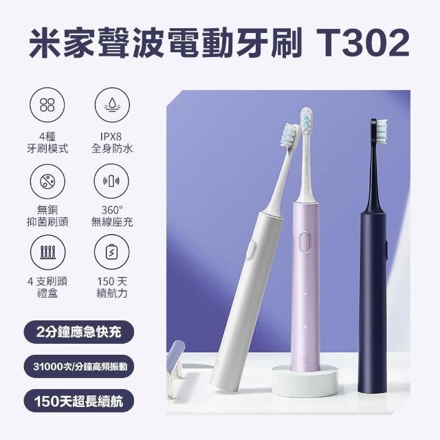 米家聲波電動牙刷 T302 (電動牙刷 小米牙刷 牙刷 高效去漬 軟毛 聲波牙刷 牙齒清潔 牙齦舒適)