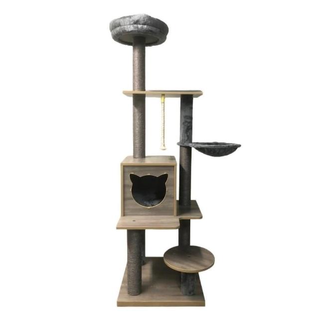 BENEFIT 斑尼菲四層貓跳台-灰色/咖啡色(貓跳台 貓抓玩具 貓爬架 貓樂園 貓咪別墅 貓益智玩具 貓磨爪 貓玩具)