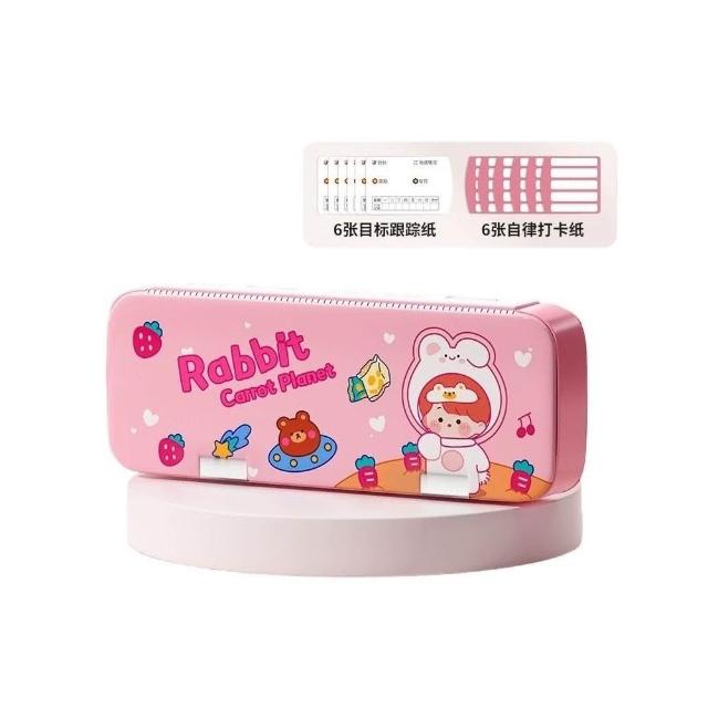 自律打卡筆盒小學生雙層多功能收納筆袋鉛筆盒新款文具盒