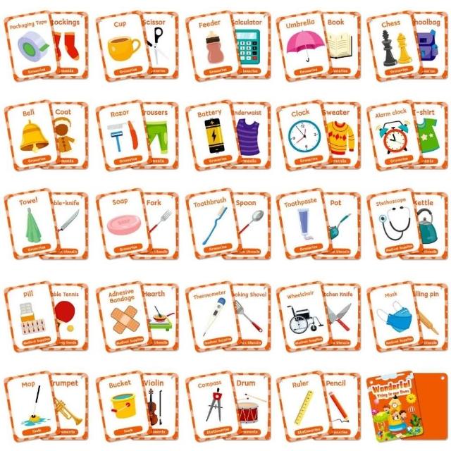 50張兒童日常物品卡片 | 日常用品教育啟蒙卡片 | 寶寶認知早教卡