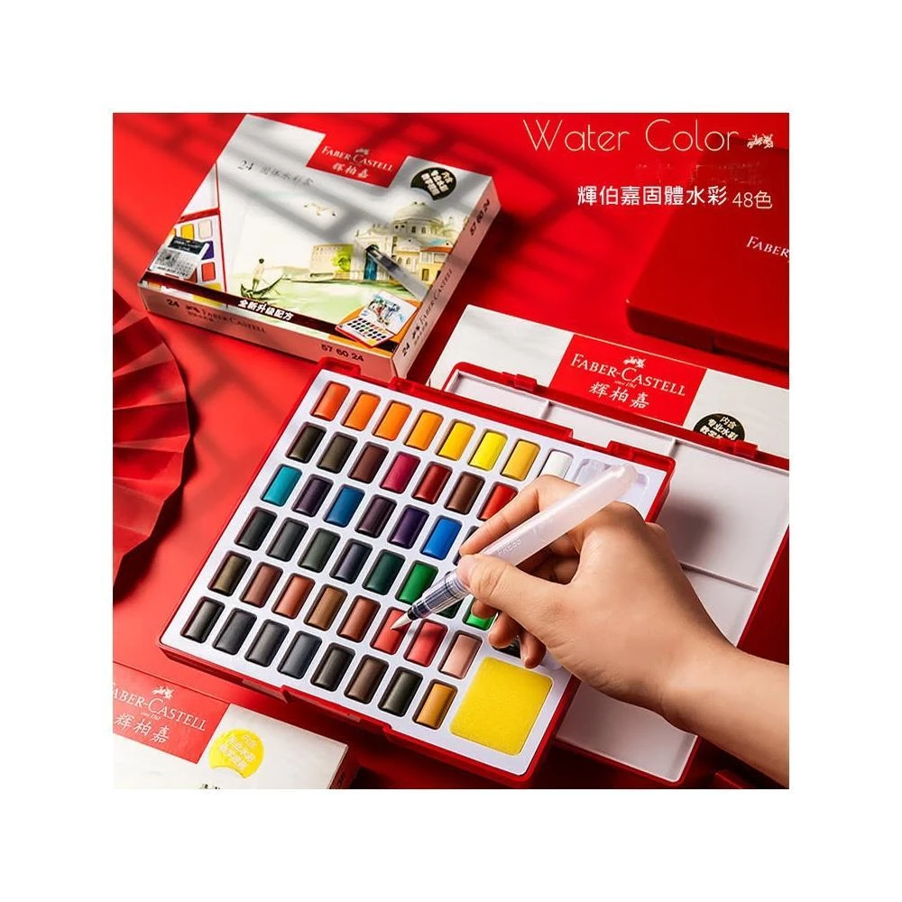 德國輝柏嘉固體水彩 48色/初學者方便使用畫畫美術用品/手繪顏料套裝(固體水彩)