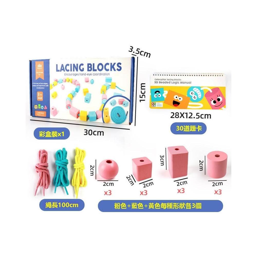 蒙特梭利教具 |木串珠塊 | 玩具安全木製材料 | 繫帶珠子和繩子玩具 | 用於幼兒學前活動(串珠手眼協調手部操作)