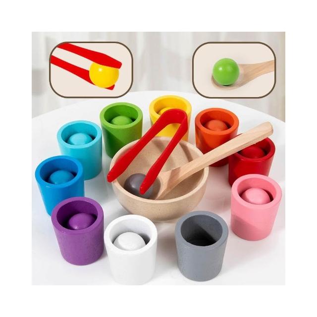 蒙特梭利感統教具 十色分類杯夾珠遊戲組|幼兒配對訓練×手眼協調×認知學習