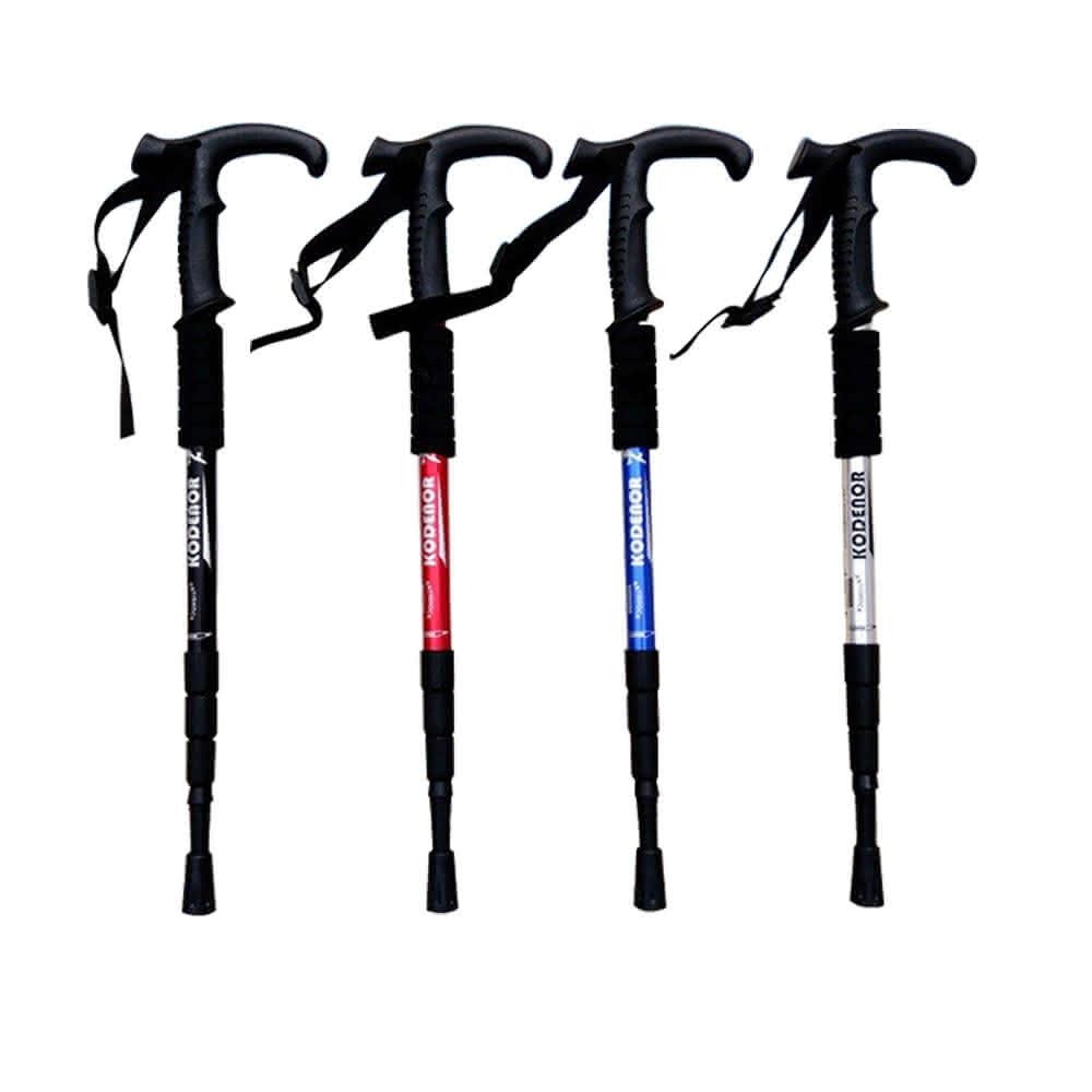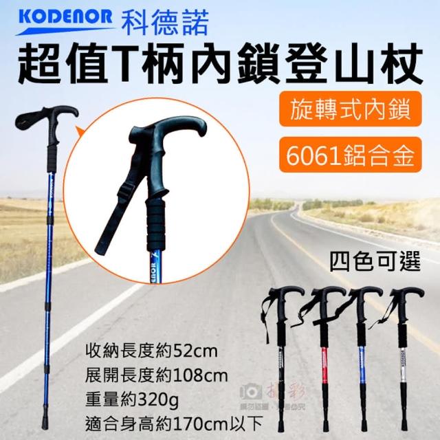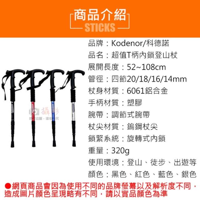 攝彩科德諾超值T柄內鎖登山杖(Kodenor 鋁合金登山杖 附擋泥板 四節健走杖 戶外健行登山)