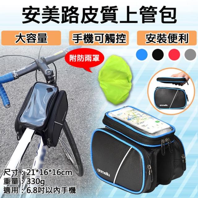 攝彩安美路皮質上管包(自行車馬鞍包 車前包 防潑水 附防雨罩 上管包 自行車置物袋 登山車裝備配件)
