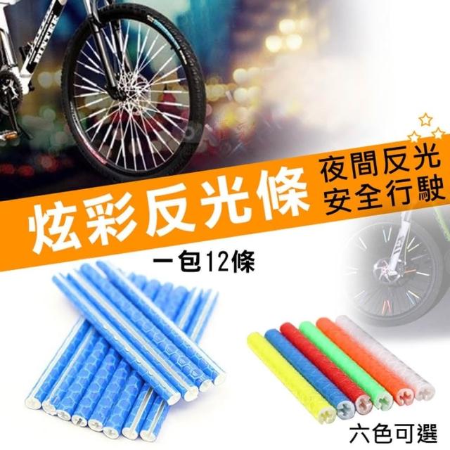 攝彩炫彩反光條(一包12條)(自行車 公路車 腳踏車 反光警示輻條 輪圈輻條 自行車輪胎鋼絲卡條 反光棒)