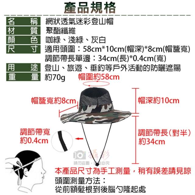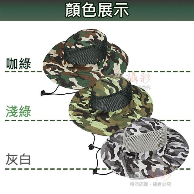 攝彩網狀透氣迷彩登山帽(遮陽帽 帽身鈕扣設計 迷彩帽 漁夫帽 透氣網狀 帽簷8cm 圓盤帽 爬山垂釣)
