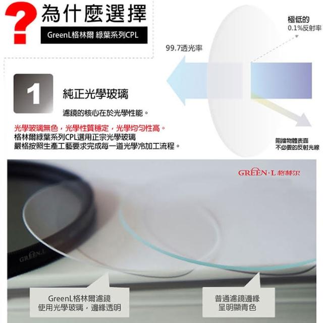 攝彩格林爾 MRC 超薄框 CPL偏光鏡(62 67 72mm 光學玻璃 Green.L 16層鍍膜)