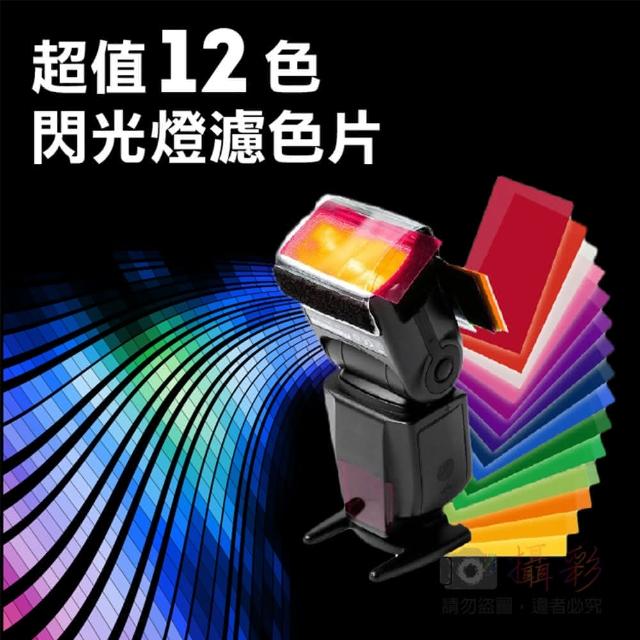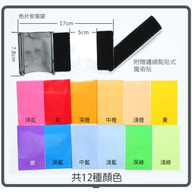 攝彩超值12色閃燈濾色片(通用型閃光燈矯色片 快速組裝快速換色 不同色溫燈光效果濾色片 攝影小道具)