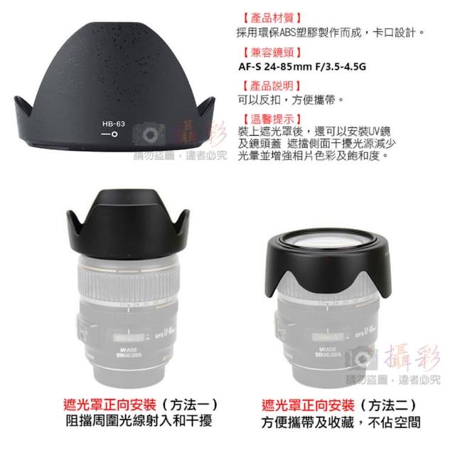 攝彩尼康 HB-63 蓮花遮光罩(蓮花型 適用尼康AF-S 24-85MM F/3.5-4.5G ED VR)