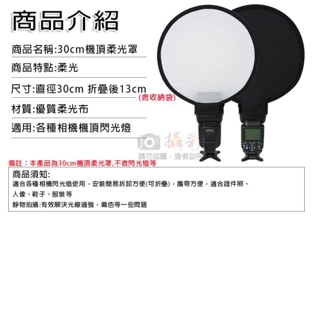 攝彩30cm機頂柔光罩(折疊柔光罩 柔光箱 通用款 圓形柔光罩 相機黑白布罩 柔光罩 閃光燈柔光罩)