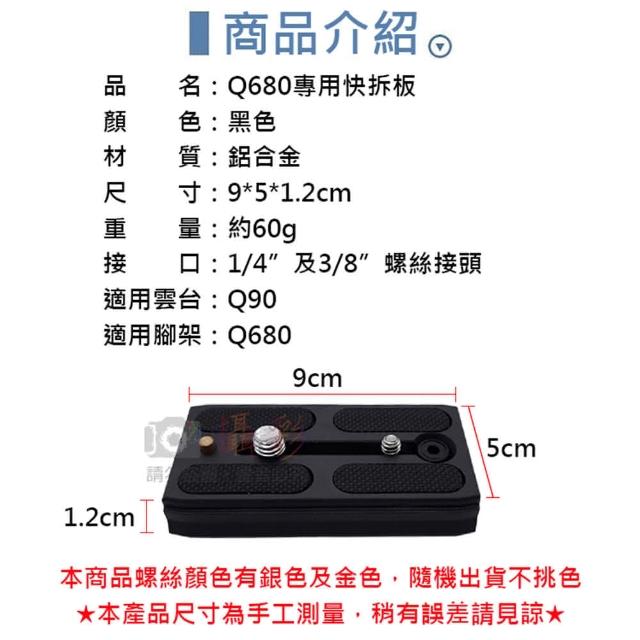攝彩Q680專用快拆板(快拆底板 Q90雲台專用 Q680三腳架快拆板 1/4英吋螺絲 鋁合金)