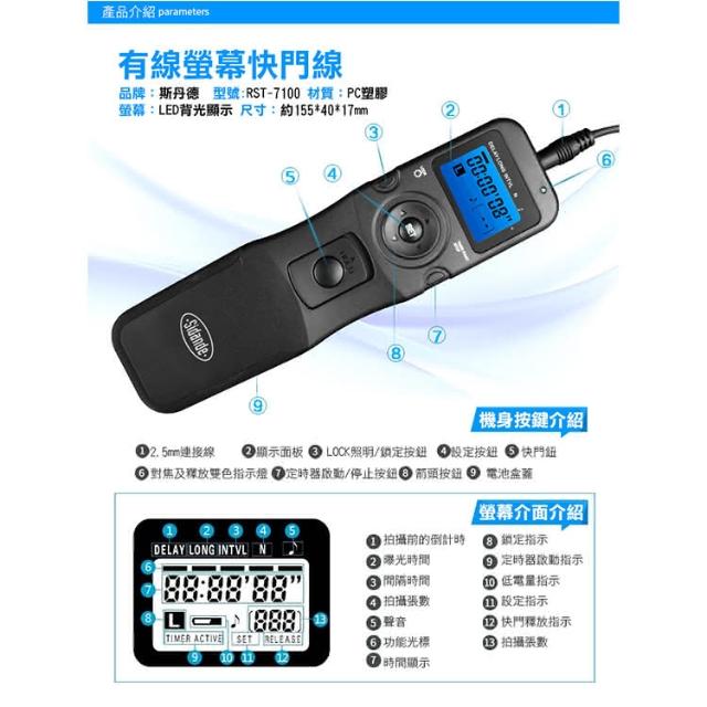 攝彩佳能 RS-60E3螢幕快門線組(特價款斯丹德 RST-7100 定時快門線 縮時攝影 C1 2.5mm接口)