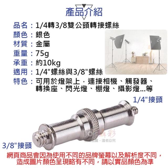 攝彩1/4轉3/8雙公頭轉接螺絲(燈架轉換螺絲 攝影器材 配件 燈架雲台轉換頭 公轉公 四分之一轉八分之三吋)