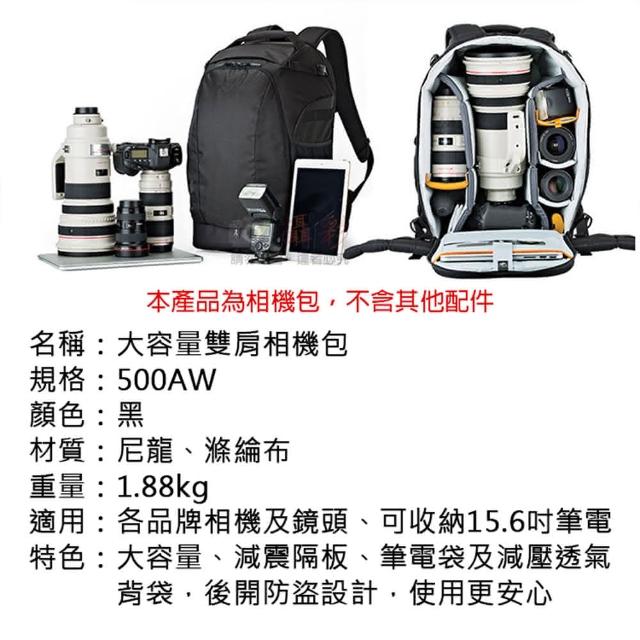 攝彩大容量雙肩相機包-500AW(附防雨罩 大三元相機包 15.6吋筆電包 攝影器材 相機腳架後背包 平板)