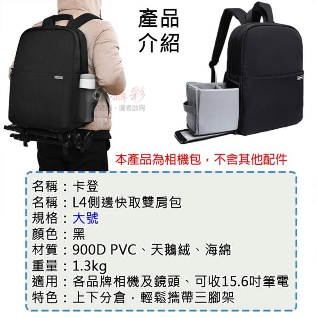 攝彩卡登L4側邊快取雙肩包-大號(CADAN 相機包 多功能後背包 休閒旅遊 一包兩用 腳架 15.6吋筆電)