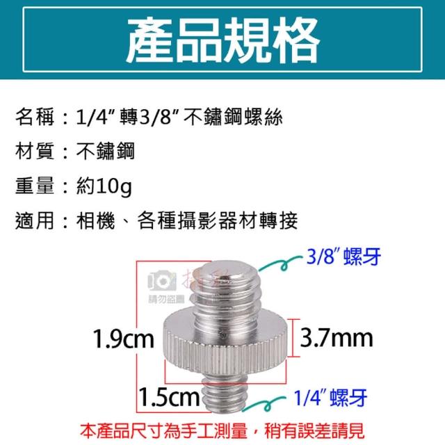 攝彩1/4轉3/8不鏽鋼螺絲(轉換螺絲 雙頭轉接螺絲 相機轉接螺絲 轉接螺帽 四分之一轉八分之三公轉公)