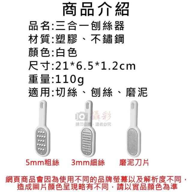 攝彩三合一刨絲器(廚房 研磨 蔬菜 料理 廚具 不鏽鋼 粗絲 細絲 磨泥 快速切菜 切絲神器 瀝水 餐廚用品)