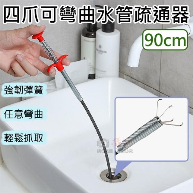 攝彩四爪可彎曲水管疏通器-90cm(防堵塞 清潔器 下水道夾取器 家用 廚房 衛浴 水槽 毛髮疏通夾 按壓式抓夾)