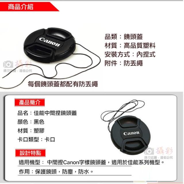 攝彩佳能 Canon副廠鏡頭蓋(附防丟繩 49 52 55 58 62 67 72 77 82mm)