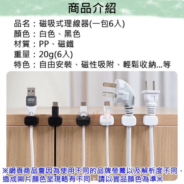 攝彩磁吸式理線器一包6入(線材磁吸固定器 固定器 桌面繞線器 電源線收納 固定線夾)
