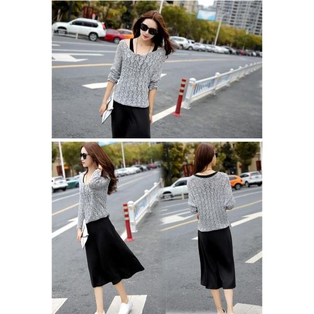 長袖長裙針織兩件式套裝 洋裝 針織衫背心裙 /JM Shop套裝