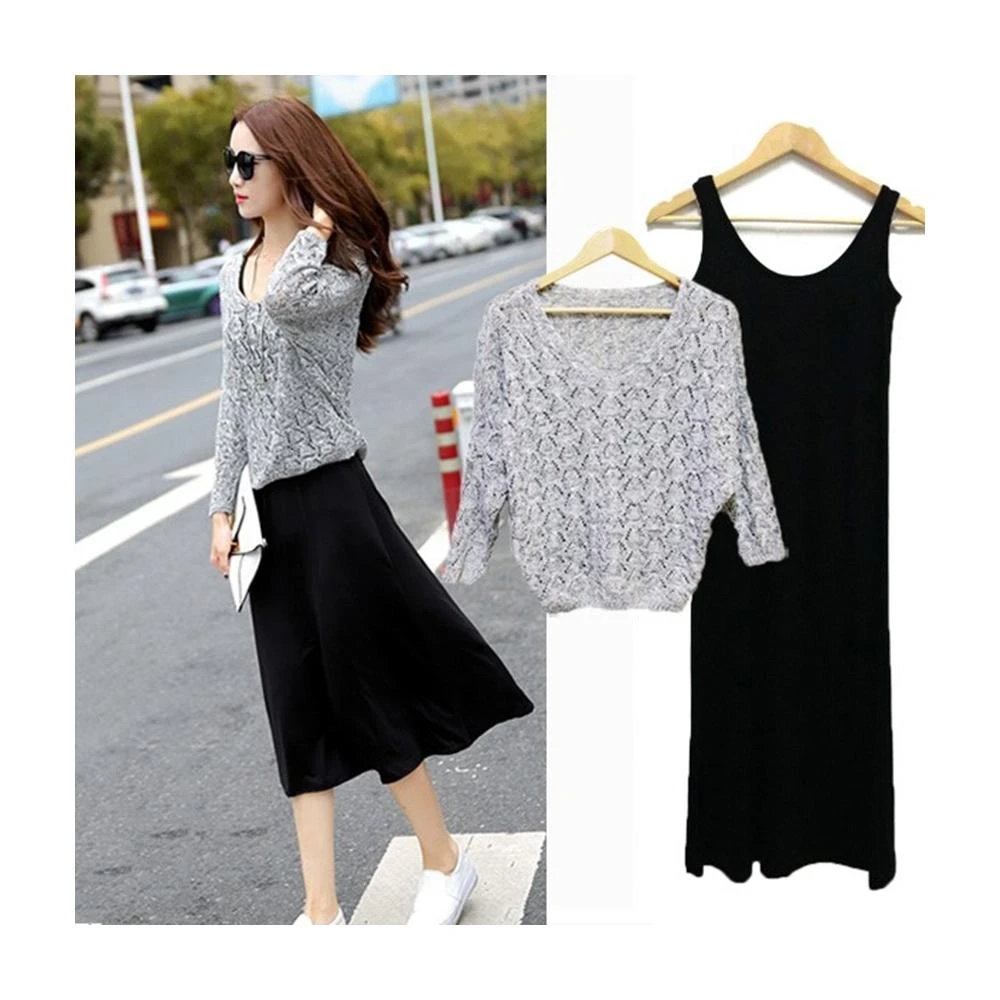 長袖長裙針織兩件式套裝 洋裝 針織衫背心裙 /JM Shop套裝