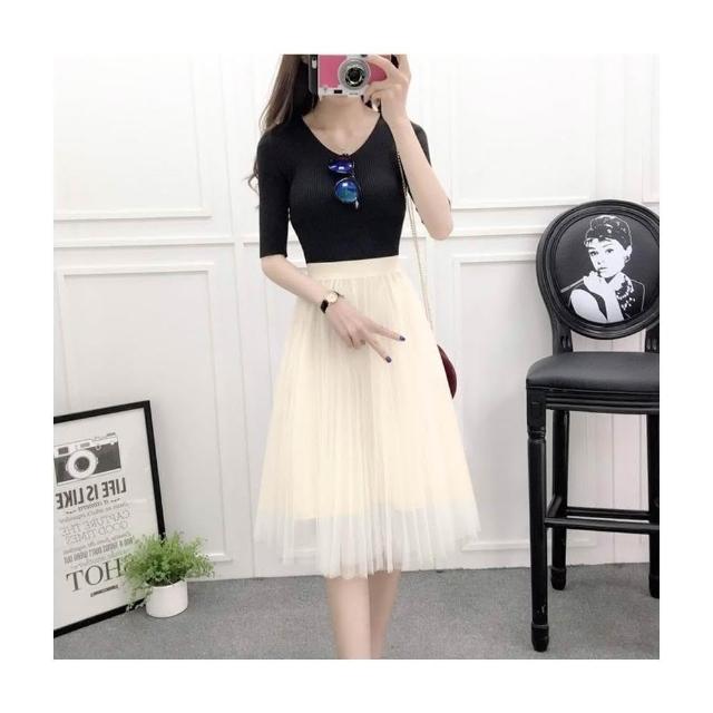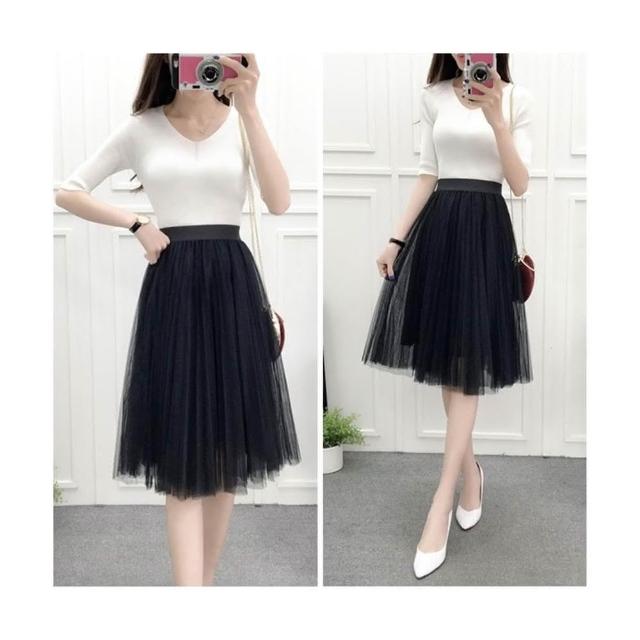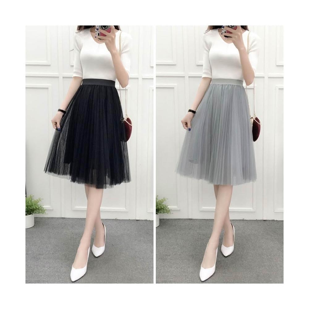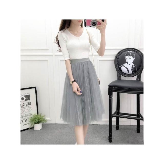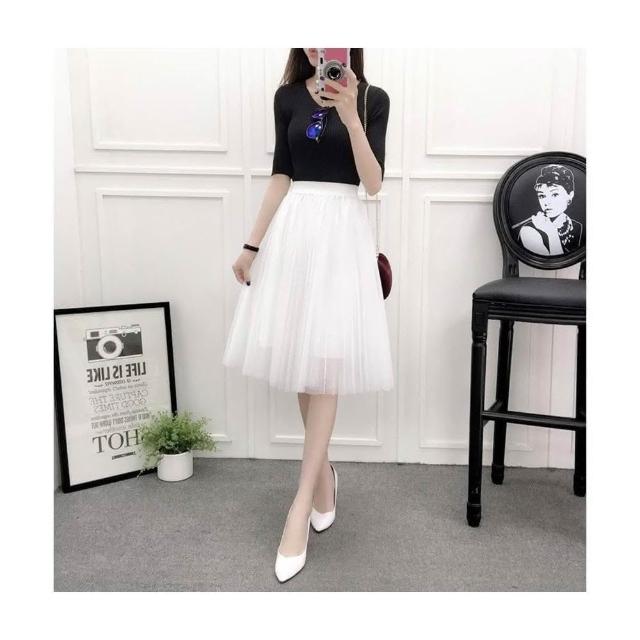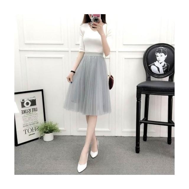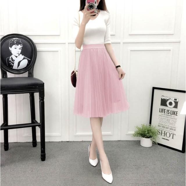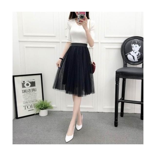 三層氣質網紗裙 百褶蓬蓬裙 沙灘裙子 及膝裙 半長裙 紗裙 /JM Shop紗裙