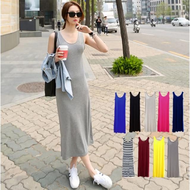 莫代爾百搭多色舒適修身背心連身長洋裝 連身長裙 連身裙 /JM Shop連身裙